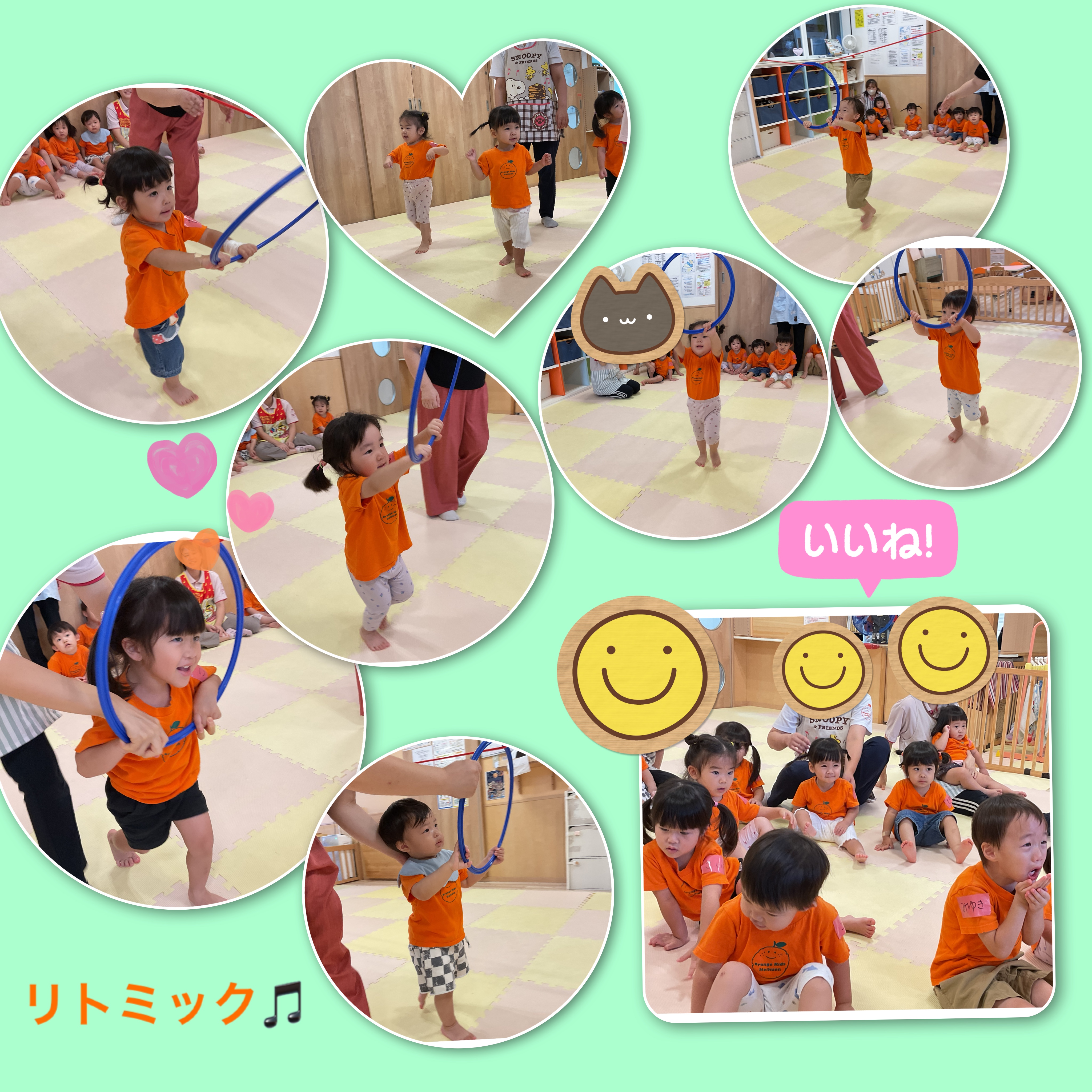 22日はリトミックでした🎶講師の方が来てくださり、ピアノに合わせて歌ったり、体を動かしたりして楽しみましたよ😊